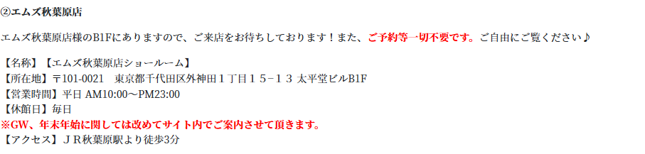 「大人のデパート エムズ秋葉原店」では、地下1階にショールームがあります。